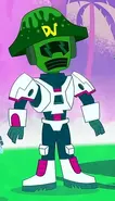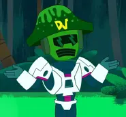 Dark Vegan is the leader of Vegandon, a fertile utopian planet inhabited by a species called Vegans. He first appeared in "Johnny in Outer Space", in which it is revealed that his method of sustaining the utopia that is Vegandon is to suck the resources of other planets and use them on Vegandon. In "Johnny X: The Final Ending (JX6-b)" he comes back to get revenge on Johnny, but with the help of Johnny and the Johnny Helping Not So Evil Force 5 and Vegan's daughter Jillian, Dukey, Susan, Mary, and the military, Dark Vegan was defeated once again, after which he started living on Earth. He starts to change his mind about Earth after Johnny introduces him to toast, which soon becomes his new favorite food. He had a cameo appearance in "Join The Johnny Scouts" when Johnny wanted to - and succeeds in - selling him Ladybird Scout cookies. Dark Vegan also appeared in "Dark Johnny". He later returned to Vegandon but left the planet and returned to Earth the moment he learned that Vegandon doesn't have