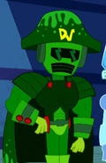 He also seems to be based on Dark Helmet from Spaceballs, as they both wear glasses and have to lift their helmets up to breathe.