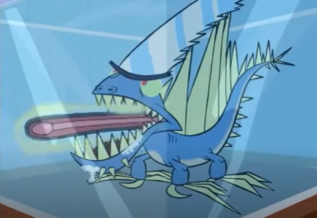 Repto Slicer is a blue lizard-like creature created by Bling-Bling Boy. He first appeared in The Return of Johnny X. Bling-Bling wanted a pet for himself but wanted something unique. And thus, Repto Slicer was born. However, Bling-Bling was a terrible owner to Repto Slicer, as he kept him in a closet and barely fed him. Because of this, Repto Slicer went on a rampage and attacked the town. Later, Johnny tames him and keeps him as a pet. In the episode Johnny and Dark Vegan's Battle Brawl Mania, Dark Vegan says a similar creature from the Planet Razorium resembles Repto Slicer. So he was sent to that planet and lived happily.