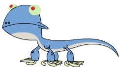Repto Slicer, when he is calm, has his claws sheathed and looks like a blue lizard. When he feels threatened or free, he extends his various sharp blades protruding from his body. His tongue even has a resemblance to a chainsaw. He loves to shred things, as he has done so with many people down to their underwear. (Ex: Mr. Black and Mr. White's clothes into bikinis, as well as Dukey into a poodle).