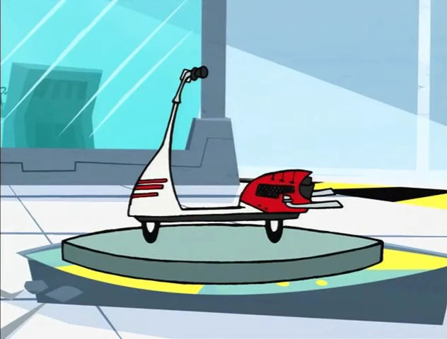 Scoots is a hyper fast scooter that also has a hidden turbo booster in case of reaching for extra speed (light speed) to travel into time. It can get activate if a person pushes the Mach 9 button, placed on the scooter's handle.
