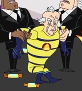 His next notable appearance as a solo villain was in "Johnny Holiday". There, the Beekeeper tries to attack theTestsiblings and Dukey many times when they try to make a holiday in the middle of the year where kids receive free candy. Each of his attempts fail, due to the fact that the Test siblings are by this time well prepared for attacks. At the end of the episode, though, he decides to help them out by allowing them to use his honey bars and having his bees drop them off around the world on "Bee Happy" Day. He then has his bees cover the Easter Bunny's lawyers in honeybars and celebrates with the Tests.
